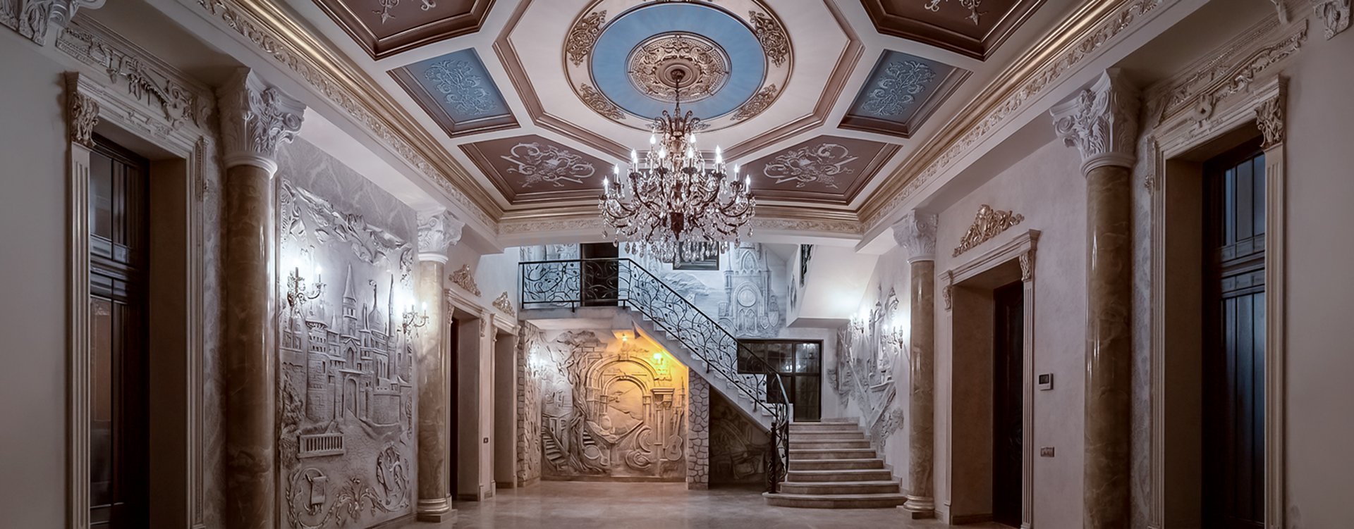 - Барельефы и лепнина: Создаем объемные картины на стенах, оживляя пространство историей и динамикой.